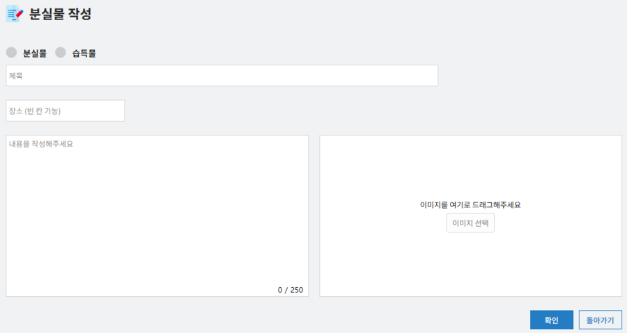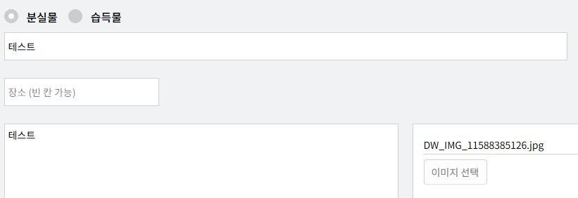 안에다가 분실물인지, 습득물인지를 체크할수있는 체크박스가 있고,