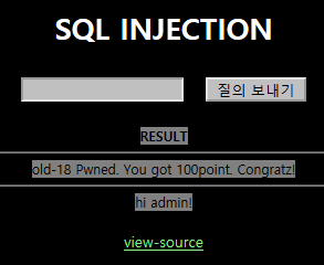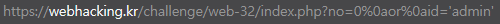 select id from chall18 where id='guest' and no=0 or id='admin'