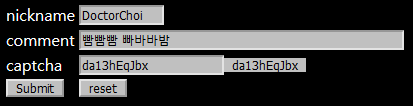 캡차코드를 복사 > 캡차 붙여넣기 > 이름에 a 입력 > 코멘트에 a 입력 > 제출