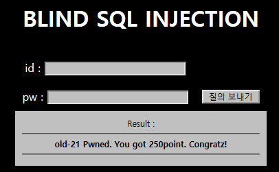 딱봐도 BLIND SQL Injection을 하라고 하네요.