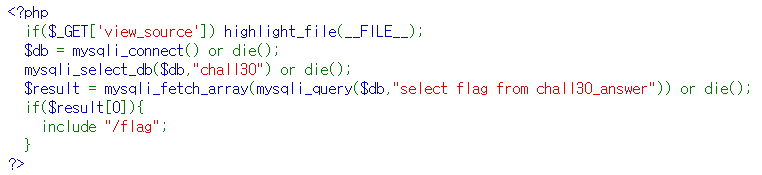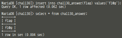 chall30_answer 라는 이름의 테이블에 flag 라는 이름의 컬럼을 만들어요.