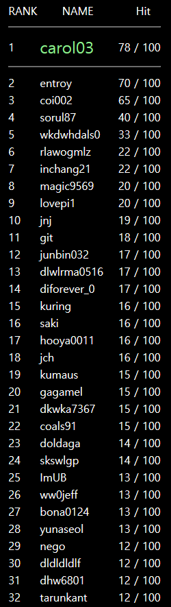 투표수 조작을 해서 자신을 100 / 100 으로 만들면 풀리는 문제같네요.