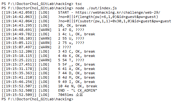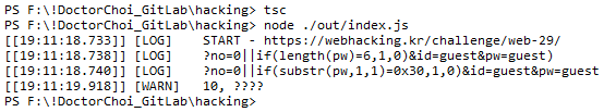 식으로 해서 guest의 pw의 길이가 5이니 6부터 돌리면 되겠네요.