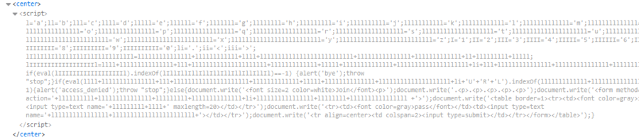 document.write('<table border=1><tr><td><font color=gray>id</font></td><td><input type=text name=' + lllllllll + llll + ' maxlength=20></td></tr>');