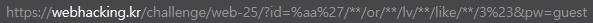 select lv from chall50 where id='꩜' or 1 like 1#' and pw=md5('guest')