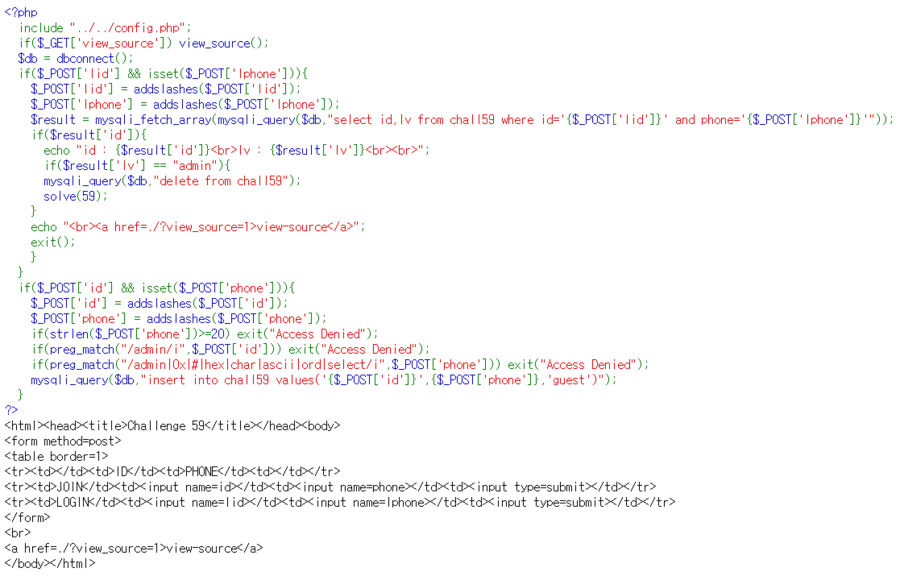 코드를 봤을때 인젝션 포인트는 가입부분의 phone 인거같은데