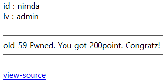 lv 가 'admin' 인 값을 집어넣은다음